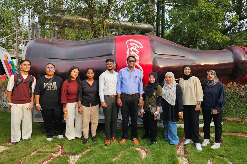 As part of the 5 days Indian Immersion Program, SRM University AP organized an industrial visit on August 18th, 2024, for the Malaysia professor and students. The group visited the Coca-Cola factory, where they first interacted with the head of the department and watched an instructional video outlining the guidelines and safety precautions for the tour.