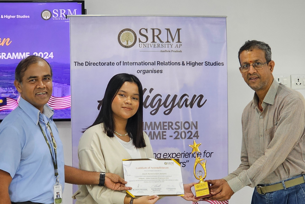 The Aadigyam Programme 2023 organized by the Directorate of IR & HS, SRM University-AP welcomed faculty and students from The Universiti Teknologi PETRONAS (UTP), Malaysia, for a 5-day immersive programme from Aug 16th to Aug 20th 2024.