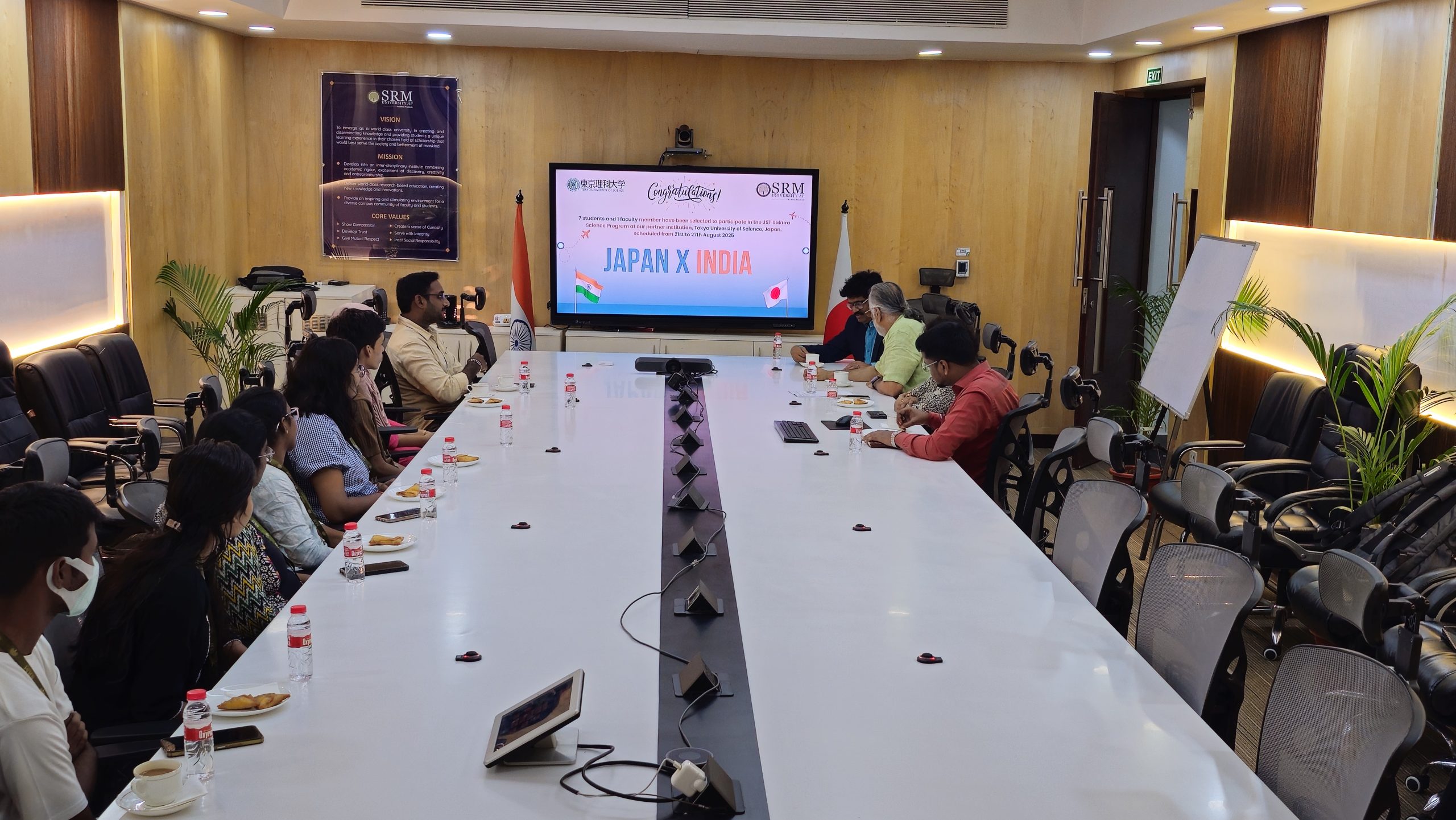 Anchoring one of the core objectives of providing global exposure through education, SRM University-AP is proud to announce that 7 students from B.Tech. Civil Engineering has been selected to the JST Sakura Science Program at Tokyo University of Science (TUS), Japan, scheduled from August 21-27, 2025. The Directorate of International Relations & Higher Studies held an event on August 13, 2025, to congratulate and brief the selected participants on their upcoming visit to TUS.