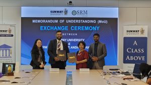 The Directorate of International Relations and Higher Studies at SRM University-AP signed a Memoranda of Understanding (MoU) with Malaysia’s globally renowned institution—Tunku Abdul Rahman University of Management And Technology, TAR UMT, Malaysia.These partnerships are aimed at fostering collaborative research, expanding publication opportunities, offering co-teaching and course supervision, and hosting joint conferences.
