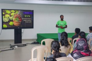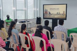 As part of the workshop, students were given awareness classes and lectures on soil conservation and the deteriorating scenario of nature such as agricultural degradation, land pollution and soil erosion. An elaborate overview on the extensive damage inflicted on soil due to various human activities was discussed during the workshop. The soil extension and soil management ventures initiated recently brought attention to the degrading status of soil health due to excessive carbon footprint.