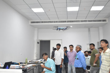 “The interactive sessions improved my knowledge on drones, air vehicles, and the basic aerodynamic science that works behind the flying objects” speaks Krishna Teja Vinnakota (1st year-CSE). On the last day of the workshop, the teams managed to develop three drones, one of which was embedded with the sensors that accurately captured data on temperature, humidity, atmospheric pressure, altitude, latitude, longitude, and dynamic pressure. “After having experience with the basic technicalities of building the drones, it is on us to improve its functionality and make it more usable” conforms Kishore who has already made an Agri Drone which can throw seeds coated with fertilizers in farming lands from a height of 4.5 meters above the ground. Inspired and educated from the workshop, our students plan to build a quadcopter in their next venture.