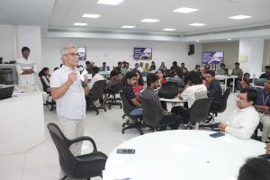 Pro Vice-Chancellor in his welcome address remarked on how teachers hold the ability to transform students. Addressing the popular misconception of how AI can replace teachers, Prof. Satish remarked, “AI may advance to great extent, but it can never replace the profound impact of teachers. Just as a restaurant meal can never match a mother’s cooking, so too can AI never replicate the love and transformation that educators bring to their students’ lives.” He also added that, in his opinion, the most respected strata of teachers are the primary and secondary school teachers, as they lay the foundation of knowledge and discipline in students. He mentioned that the university teachers fine-tune the students’ future.