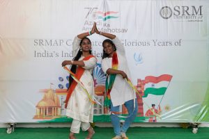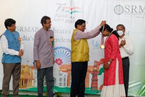 SRM University-AP celebrated the 75th Independence Anniversary of the nation in all its pomp and glory. As India has surpassed 75 years of independence and is propelling towards a glorious future of many more accomplishments, the nation was painted with the colours of courage, peace, and prosperity as part of the Har Ghar Tiranga campaign launched by the Prime Minister. In keeping with the vibe and vigour of freedom celebrations resonating all over the nation, the SRMAP NSS unit and the Department of Student Affairs visited houses in the nearby villages to promote the campaign.