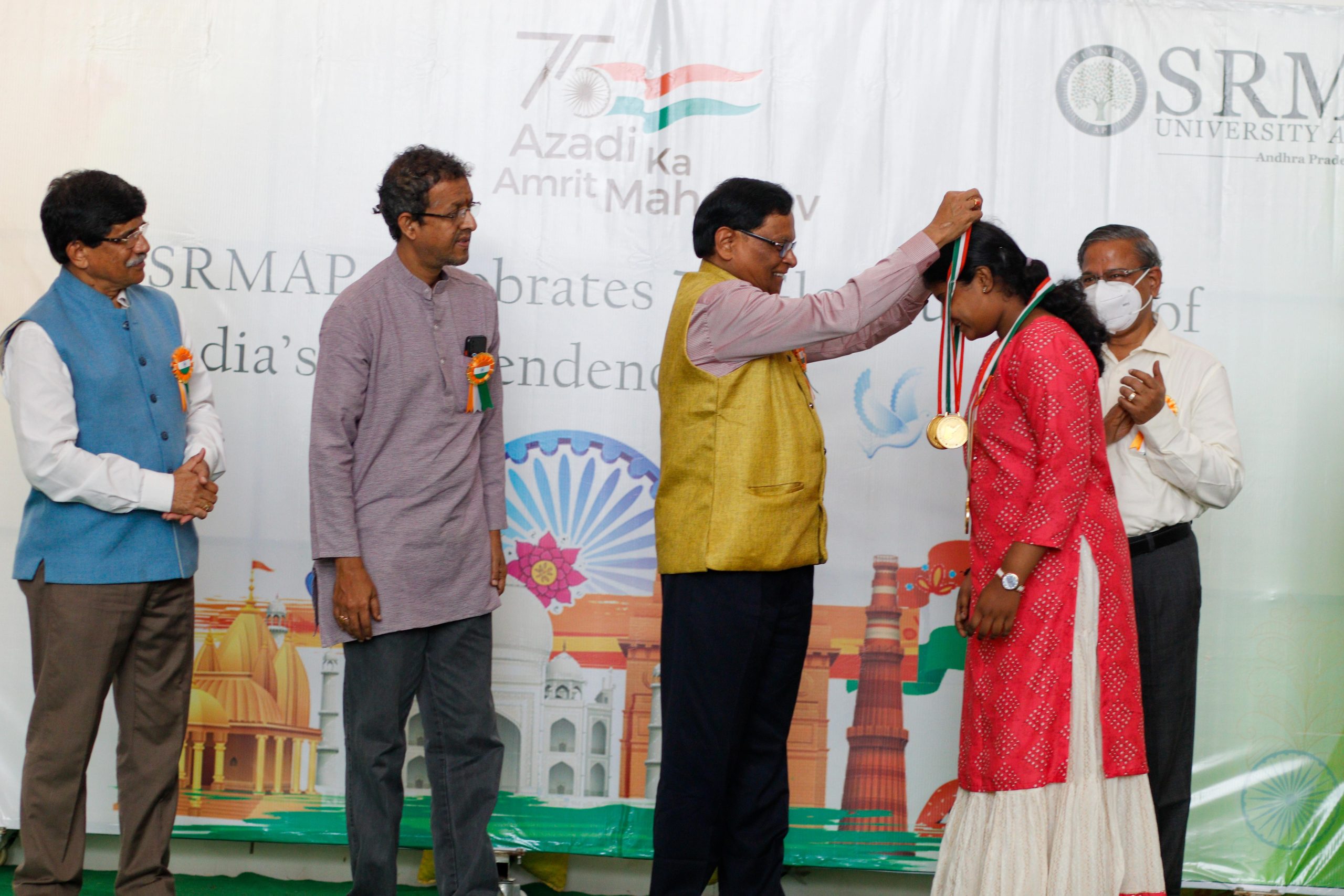 Students staged a colourful array of cultural programmes including songs and dance performances expressing their patriotic spirits. Prof VS Rao felicitated students who have brought laurels to the institute for their outstanding skills in various curricular and extra-curricular activities. Certificates were distributed to the participants of the Blood Donation camp. And the celebration came to a closure with the prize distribution ceremony to the winners of various games and sports events conducted on campus as part of the Azadi ka Amrit Mahotsav celebrations.