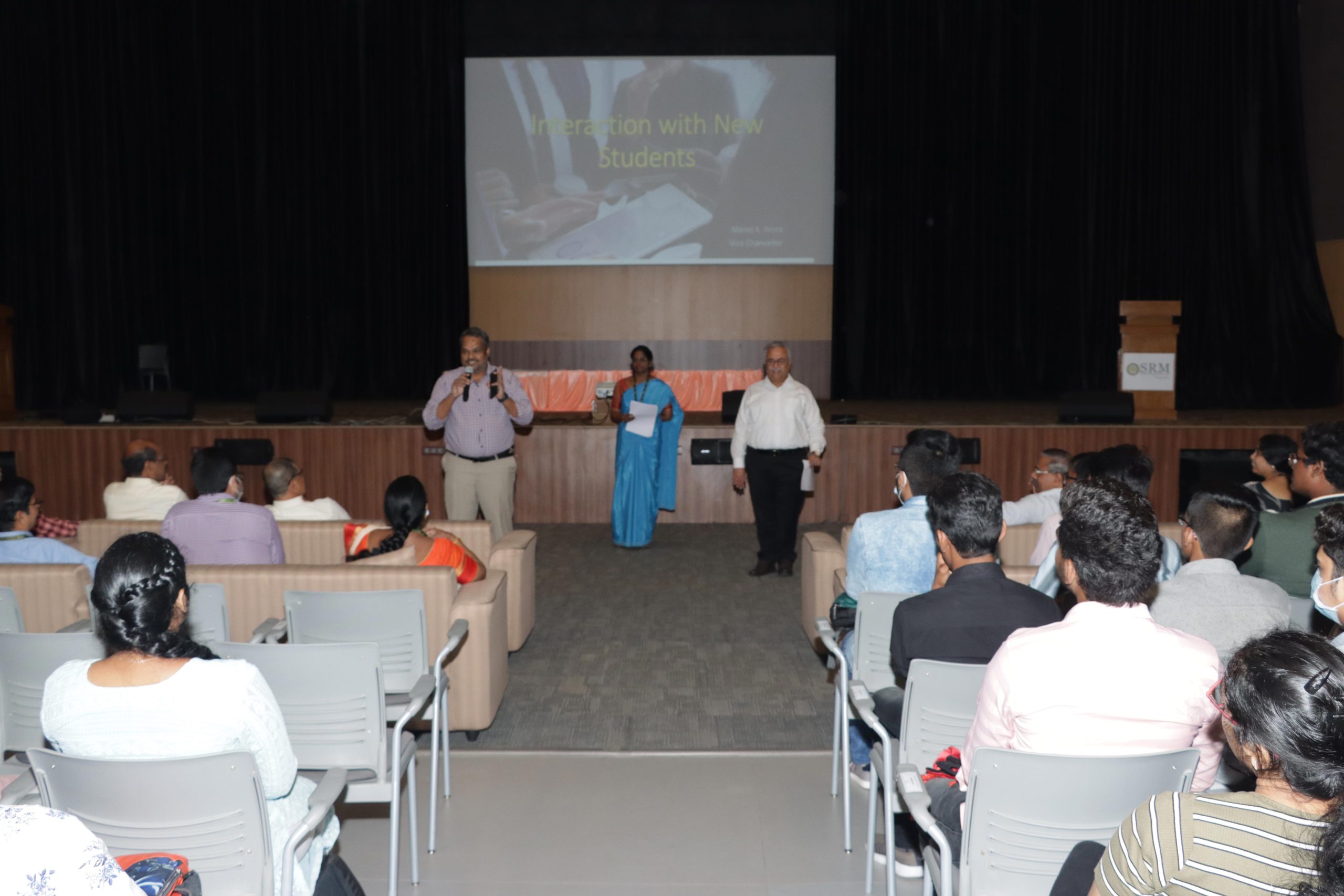 SRM University-AP welcomed students to campus on Monday, October 10, 2022, in an event that commenced at the APJ Abdul Kalam Auditorium. The interactive session with Vice-Chancellor Prof Manoj K Arora aimed for the smooth transition of incoming students to university life.