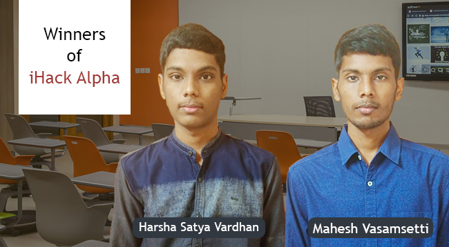 Department of Electronics and Communication Engineering rejoices in the exhilarating success of Harsha and Mahesh, the winners at iHack Alpha Hackathon. iHack Alpha was an AI-Hackathon, where developers from all backgrounds were invited to solve real-world problems with innovative AI solutions powered by sentient.io AI and Data platform. Unlike the usual hackathons, it was conducted over three weeks, starting from December 2, 2020, and finished on December 27, 2020, and participants were supposed to present a full-fledged application. Four themes were given to participants to work on in the hackathon- 1) Use of AI in retail 2) Use of AI in Customer service 3) Use of AI in media 4) Use of AI in Accessibility.