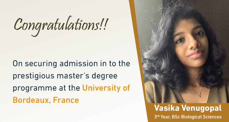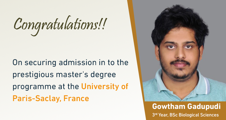 Final year B.Sc. Biology student secures admission in University of Paris-Saclay, France