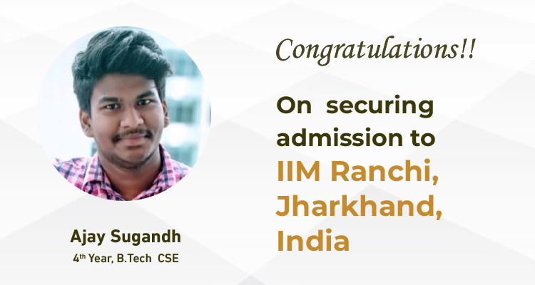 Speaking of the support received from SRM University-AP, Ajay acknowledged, “Firstly, I am grateful to the faculty members of the Department of CSE who have been a constant support in reaching my goals. Secondly, the tremendous support from all my peers and family has encouraged me to manage my course CAT preparation together”.