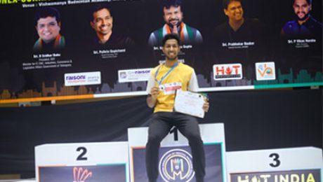 SRMAP’s Rushendra wins silver at Telangana State Badminton C’ship