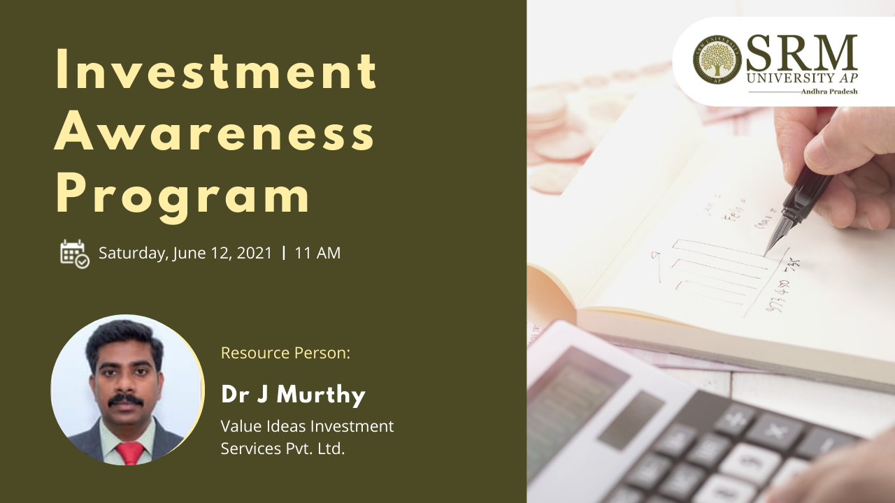 The School of Entrepreneurship and Management Studies (SEAMS), SRM University-AP, Andhra Pradesh collaborates with Value Ideas Investment Services Pvt Ltd, to conduct an enlightening webinar titled “Investment Awareness Programme” on June 12, 2021, from 11 am onwards. Dr J Murthy, an executive from Value Ideas Investment Services will engage the BBA students on this webinar which is exclusively designed as part of their coursework.
