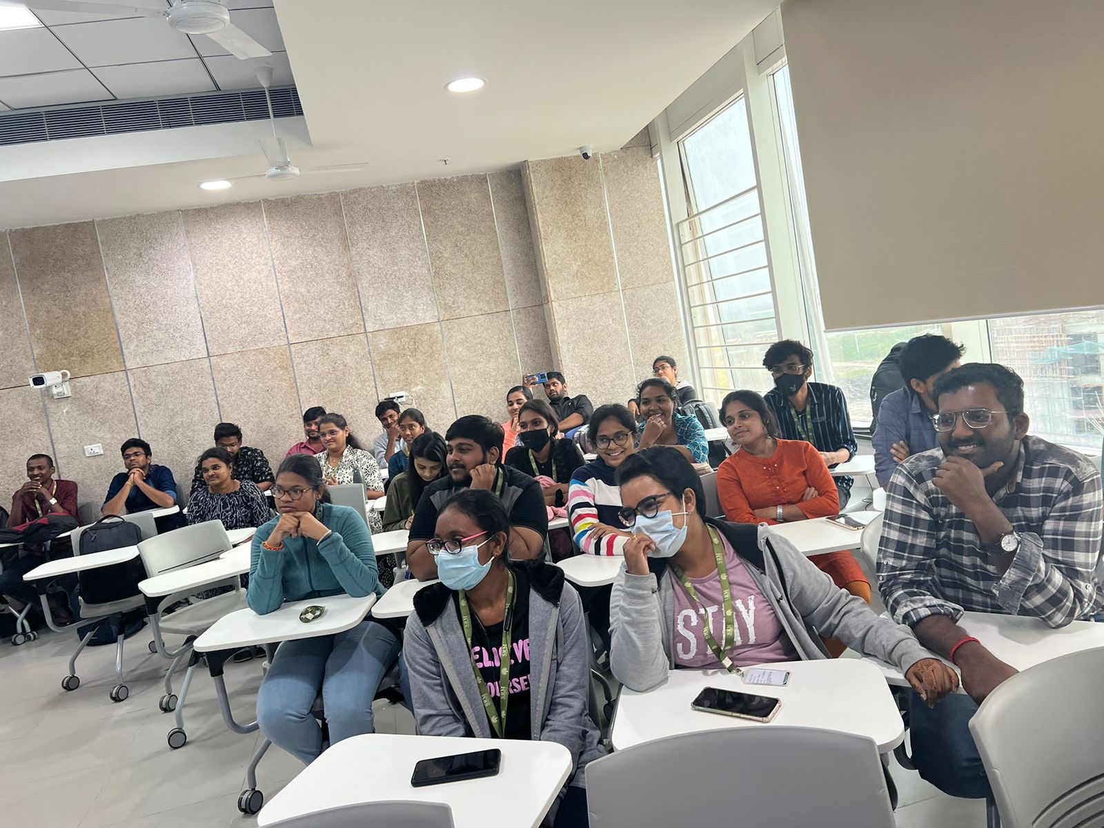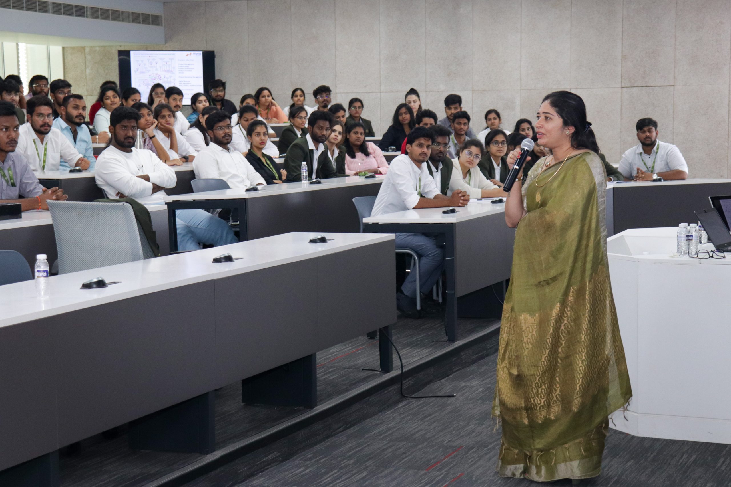 Dr Manish Jha explicated the various nuances of the industry and advised the students on the specific skillsets that have to be mastered to survive in the rat race. He stated that improvisation skill is more important to survive in this dynamic field. Dr Jha explained the importance of an MBA and the difference in expectation and reality while pursuing a Master’s in Business. A detailed overview of different specialisations along with their scopes and opportunities was also discussed. He had also real-life examples from his own journey that deeply impressed and motivated the students and faculty of the school. Dr Jha also addressed Ms Sudha, who was also a guest at the talk and remarked that she is an inspiration for all the girl students who are interested in building up themselves.