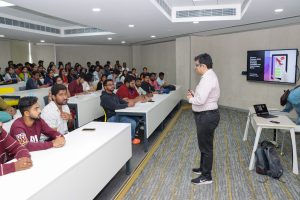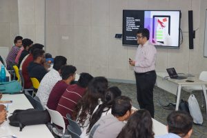 Engaging the students in stimulating discussions, Mr Harish explored various topics related to branding. He delved into personal branding, emphasizing the importance of cultivating a strong and authentic personal brand that aligns with one’s values and goals. He also discussed the concepts of the ‘moment of truth’ and the ‘zero moment of truth,’ highlighting the significance of making positive impressions during customer interactions and the influence of online research on consumer decision-making.