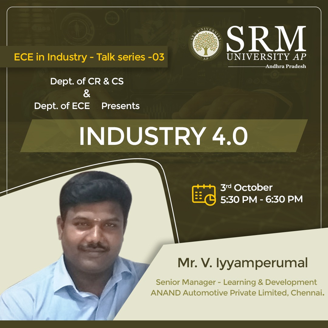 In the next chapter of the “ECE in Industry” talk series, Mr V Iyyamperumal will be joining the students to discuss the expectation of the future technology-driven industry. He will deliver a speech-“Industry 4.0” on October 3rd, 2020, at 5.30 pm.