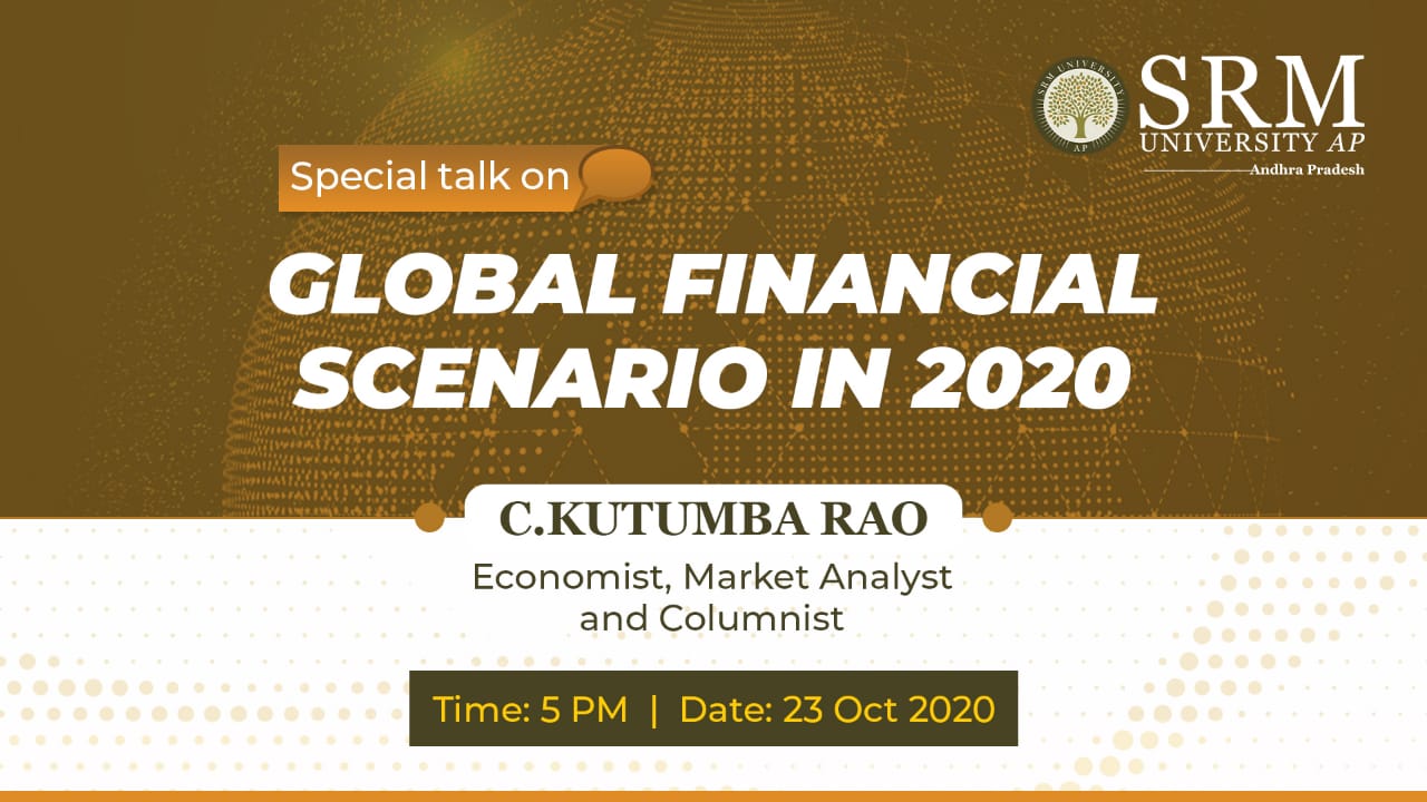 SRM University-AP, Andhra Pradesh is delighted to announce that C Kutumba Rao will be conducting a session titled “Global Financial Scenario in 2020” on October 23, 2020, at 5.00 PM. C Kutumba Rao is a resourceful and ambitious market analyst/economist with an extensive understanding of financial markets/economic theory and its practical implications. His ability to identify emerging economic trends and issues, understanding of economic relationships, knowledge of interest rates, taxation, and employment levels, enables him to provide a clear explanation of financial information along with effective recommendations.