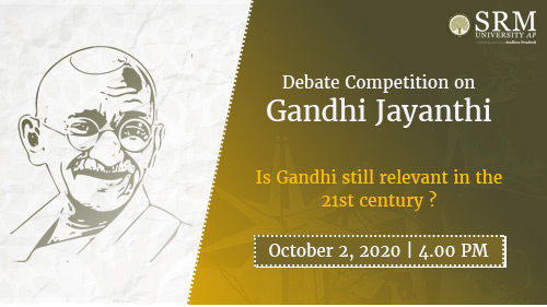 SRM University-AP, Andhra Pradesh invites all the students to participate in the debate “Is Gandhi still relevant in the 21st century?” on October 2, 2020, at 4 p.m. The teachings of Gandhiji is pertinent to the youth of India in the 21st century, guiding them to accomplish their goals, and encouraging them to pursue the path of compassion and kindness. The other notion might be that with the rapidly changing dynamics of the world, and the development of global networks in the modern age, Gandhiji’s philosophy loses its relevance to the youth. On Mahatma Gandhi’s birth anniversary, students of SRM AP are urged to discuss and explore the ideologies of Gandhiji and their relevance in the 21st century.