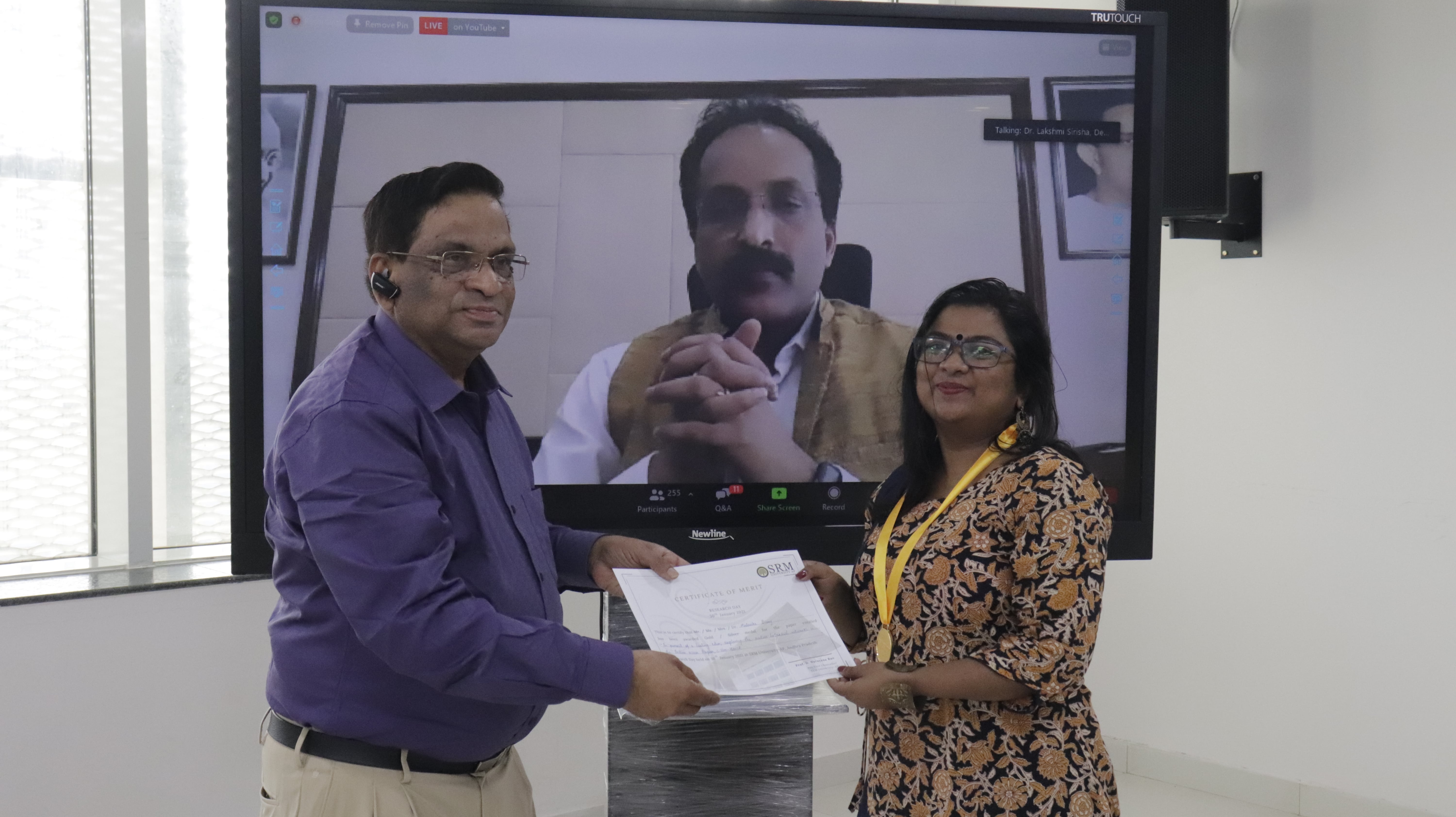 Advancing the celebration, Prof D Narayana Rao, Pro Vice-Chancellor, SRM AP took the virtual podium to comment “Science and Technology is the driving force for the economic development of India. We need to encourage young scholars by providing a vibrant and conducive research environment. Expanding the frontiers of knowledge by triggering interest among students must be the priority of the institutions. Also, focus should be on translational research with societal applications through collaborative research to make our nation a global leader.”