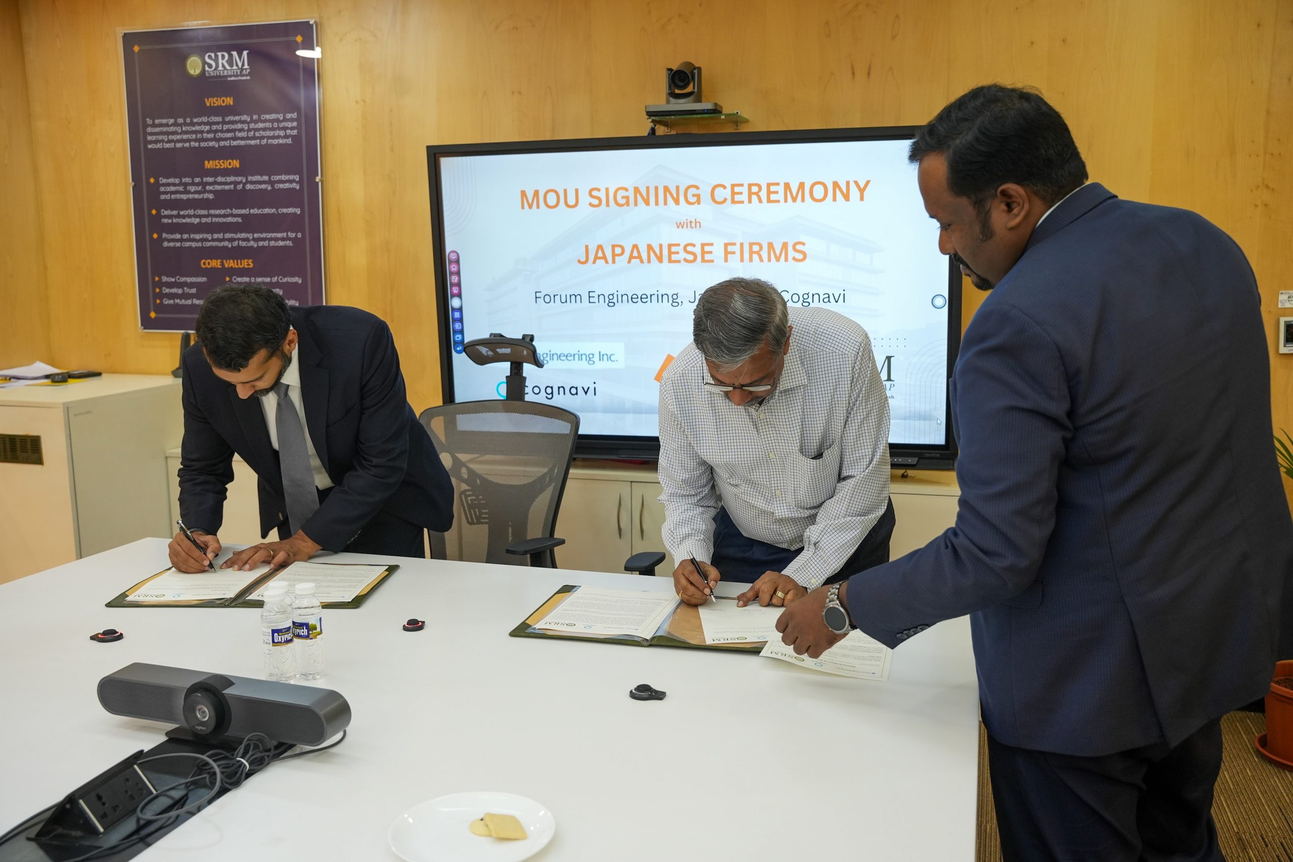 In a landmark move towards enhancing global educational opportunities, SRM University-AP has entered into a Memorandum of Understanding (MOU) with Japan’s Forum Engineering Inc. and Cognavi India Private Limited. The agreement aims to foster collaboration in providing students with career opportunities in Japan’s thriving engineering sector.
