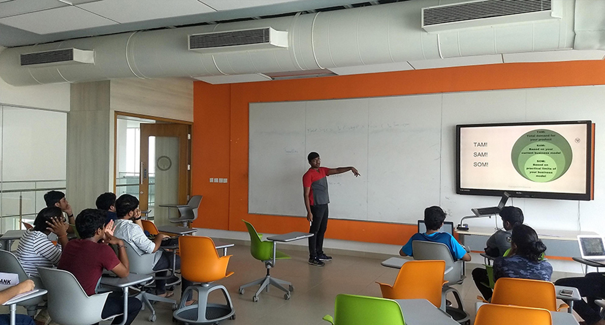 In order to create an active startup ecosystem, the lab focuses on adopting the working style of Silicon Valley. The functions in a very channelised manner. The journey of an aspiring team of entrepreneurs begins by entering the lab with a desire to change the world for the betterment of society. We guide the Startup founders through the steps of Ideation, Validation, Market Research, Business Model Construction, and then Venture Capitalist Presentations. Frequent case studies and discussion sessions on the aforementioned topics constitute a significant part of our meetups.