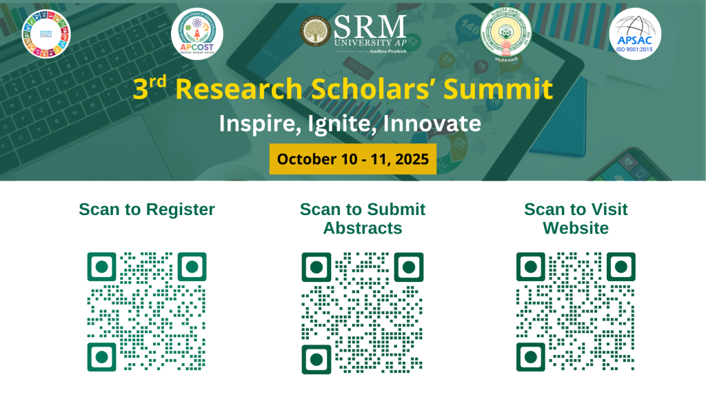 SRM University-AP, Amaravati, is organising the 3rd Research Scholars’ Summit: Inspire, Ignite, Innovate on October 10-11, 2025. Join this inspiring event, designed to broaden intellectual horizons and shape the careers of young and emerging researchers. This platform will help aspirants explore different avenues of research interest, exchange the latest scientific knowledge, and derive critical insights regarding research progression. This summit is indeed a platform for budding research aspirants, providing interactive sessions where they can come together, network, and collaborate with the best minds.