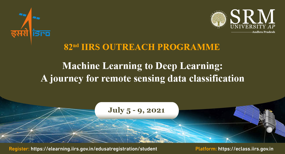 Indian Institute of Remote Sensing (IIRS)- ISRO in Dehradun has been organising a series of outreach programmes in collaboration with SRM University-AP. The 82nd programme in the series is a five-day course on “Machine learning to Deep Learning: A journey for remote sensing data classification” which will be conducted from July 5-9, 2021. The sessions will be from 4.00 pm to 5.30 pm on all days.