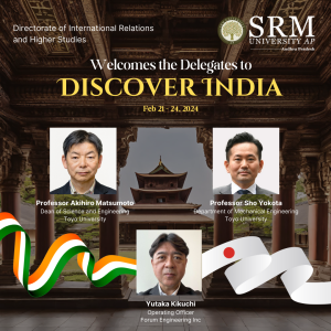 The Directorate of International Relations & Higher Studies welcome three esteemed guests from the Land of the Rising Sun – Professor Akihiro Matsumoto, Professor Sho Yokota, and Yutaka Kikuchi from Toyo University and Forum Engineering from February 21-24, 2024, as part of the Discover India initiative, foster global connections and explore new horizons together.