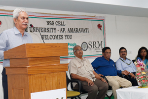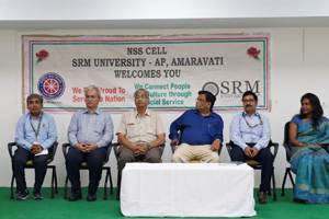 A famous Arabian Proverb says, “He who has health has hope and he who has hope has everything.” Comprising with that, the National Service Scheme Cell of SRM University-AP has taken a holistic initiative towards its students, staff and faculty by organising an eight-week “Yoga & Meditation Training Programme” in collaboration with the Heartfulness Institute, Hyderabad. The inaugural session was graced by the presence of Prof. D. Narayana Rao, Pro-Vice Chancellor; Dr. D. Gunasekaran, Registrar; Dr. A. Lakshmana Rao, Assistant Professor, Department of Commerce and NSS Coordinator; Dr. Venkata N Nori, Associate Professor, Department of Mechanical Engineering and in house yoga trainer for boys; Dr. Ajitha, Instructor, Department of Business Administration and in house trainer of yoga for girls. Sri N. L. V. Pandu Ranga Prasad, social worker and an associate of Shri Ram Chandra Mission, has honoured the university with his presence as a Chief Guest in this event.