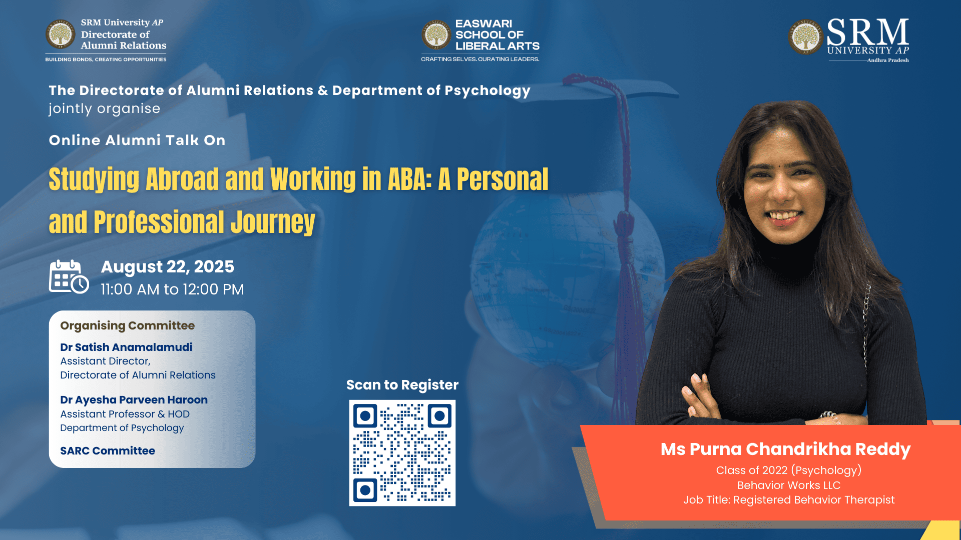 The Directorate of Alumni Relations, in collaboration with the Eswari School of Liberal Arts, is set to host an online Alumni talk titled “Studying Abroad and Working in ABA: A Personal and Professional Journey.”