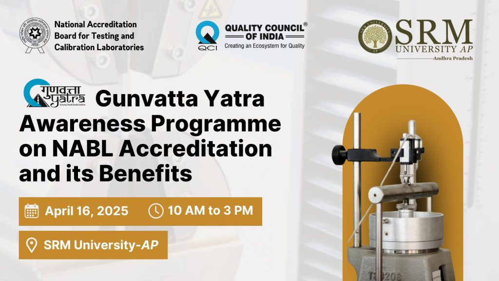 The Department of Civil Engineering, in collaboration with the National Accreditation Board for Testing and Calibration Laboratories, organises a National Workshop, “Gunvatta Yatra – Awareness Programme on NABL Accreditations and its Benefits”, on April 16, 2025.
