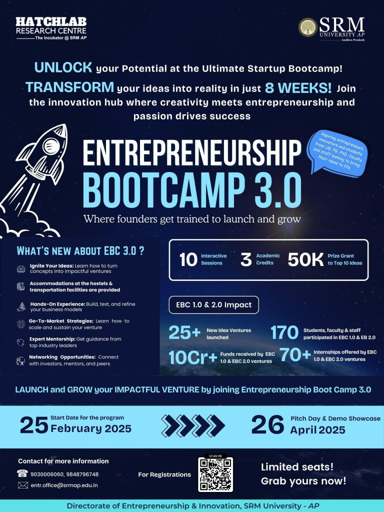 The Directorate of Entrepreneurship and Innovation is launching yet another chapter of its most coveted event – the Entrepreneurship Bootcamp 3.0 (EBC 3.0). The workshop that previously saw the start of 25+ new ventures, gave way to 80+ internships and 10+ crore funding is now set to embark on a new chapter that is going to be better, bigger, and bolder.