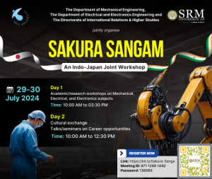 In a groundbreaking initiative, the Directorate of International Relations & Higher Studies, along with the Departments of Mechanical Engineering and Electrical and Electronics Engineering, is set to host a virtual collaborative joint workshop titled “SAKURA SANGAM: Indo-Japan Joint Workshop.” This two-day event, scheduled for July 29 – 30, 2024, aims to foster academic, cultural, and career collaborations between the prestigious Toyo University in Japan and SRM University-AP.