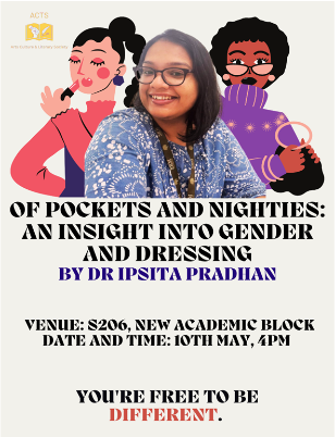 ACTS Club of SRM University-AP recently organised an interactive seminar titled “Of Pockets and Nighties” by Dr Ipsita Pradhan, Assistant Professor, School of Liberal Arts and Social Sciences, shedding light on the profound influence of patriarchy on dressing styles. The seminar aimed to delve into the societal norms that shape gender-based dress codes, perpetuating inequality. With the objective of raising awareness and empowering participants to question traditional expectations, the event sparked meaningful discussions and inspired action towards a more inclusive and equitable society.