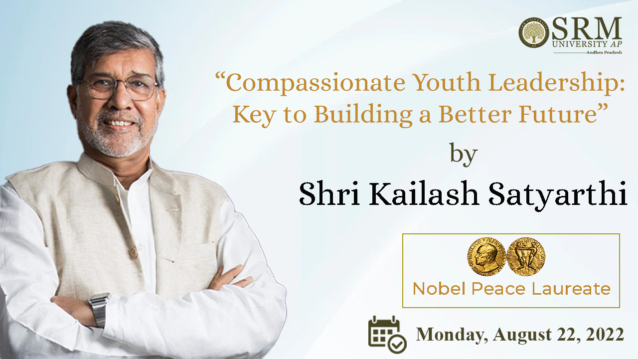 Indian Nobel Peace Laureate and the internationally acclaimed child rights activist Shri Kailash Satyarthi will address the students and faculty of SRM University-AP on August 22, 2022. His talk is scheduled on the topic “Compassionate Youth Leadership: Key to Building a Better Future”. Shri Satyarthi will confer with the students on the necessity of fostering compassion and empathy among the youth of the nation to lead the country towards a more humane future.