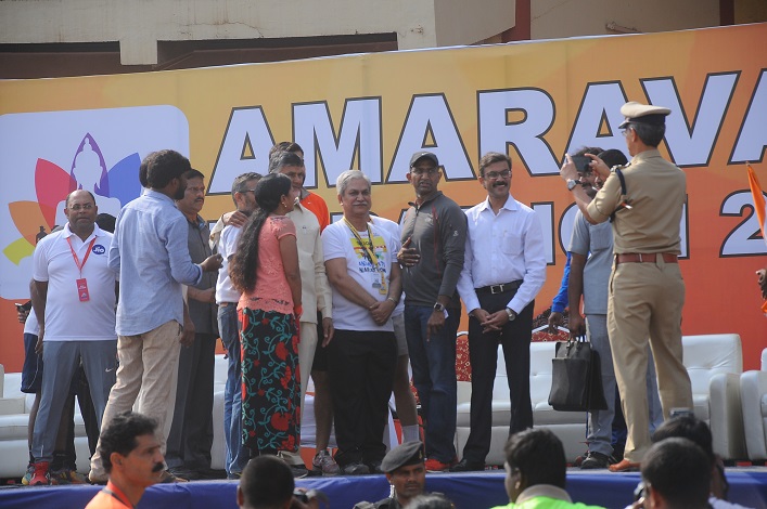 Most of the students took part in the 5K Fun run which began apparently at 7 am, with SRM Amaravati flags, determination and a vibrant energy. Every student who took part in the marathon participated with lots of sporting effort and derived some good ounces of fun too. After reaching up to the end point, all the participants were handed over with a medal for successfully completing the marathon and their efforts were acknowledged. Then the chief minister of Andhra Pradesh, Honourable Nara Chandrababu Naidu arrived at the venue and delivered an overwhelming speech with note of encouragement and complimented the participants. He emphasized about the role of physical exercise in one’s life and how it should be practiced on daily basis in order to be a healthy individual and hence creating a health society. Later, at the end Chief Minister awarded prizes to those who aced the race.