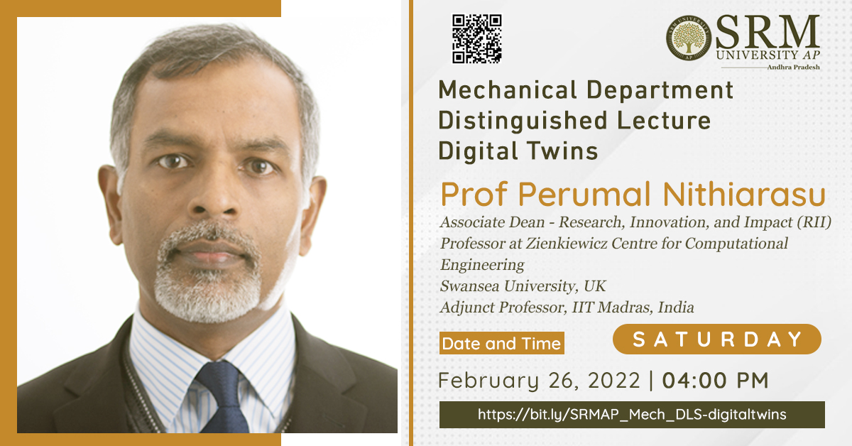 The Department of Mechanical Engineering is bringing forth the next edition of Mechanical Department Distinguished Lecture with Professor Perumal Nithiarasu,Associate Dean – Research, Innovation, and Impact (RII), Professor at Zienkiewicz Centre for Computational Engineering, Swansea University, UK, and Adjunct Professor, IIT Madras, India.
