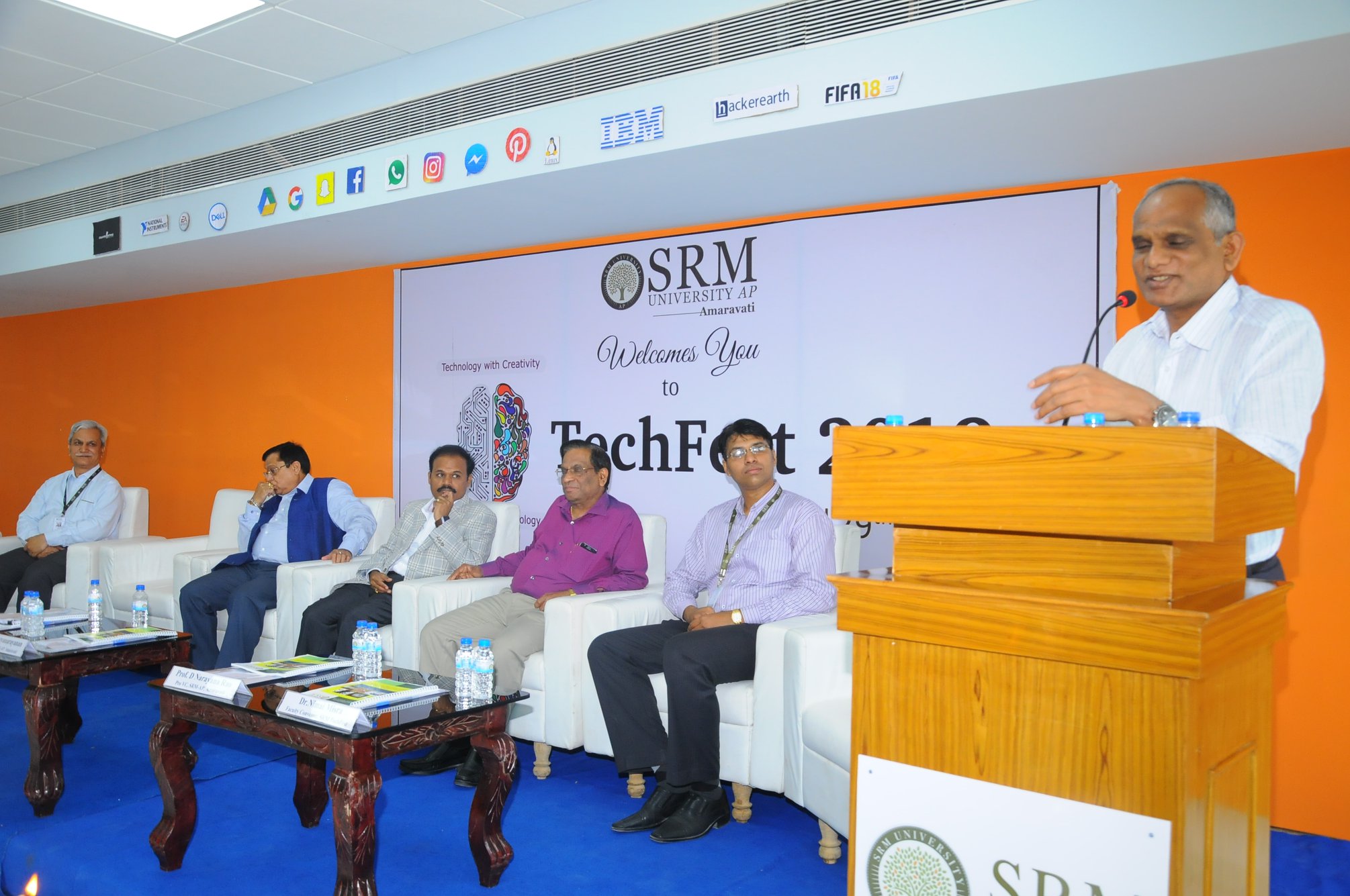 The first Tech Fest of SRM University – Andhra Pradesh, was inaugurated on 28th March 2018 by Dr. V.K Saraswat (Member – NITI Aayog), Dr. M. Nageswara Rao (Associated Director – ISRO Satellite Center), Dr. P. Sathyanarayanan (President – SRM University), Dr. D. Narayana Rao (Pro VC – SRM University – Andhra Pradesh) and Dr. D. Gunasekaran (Registrar – SRM University – Andhra Pradesh).