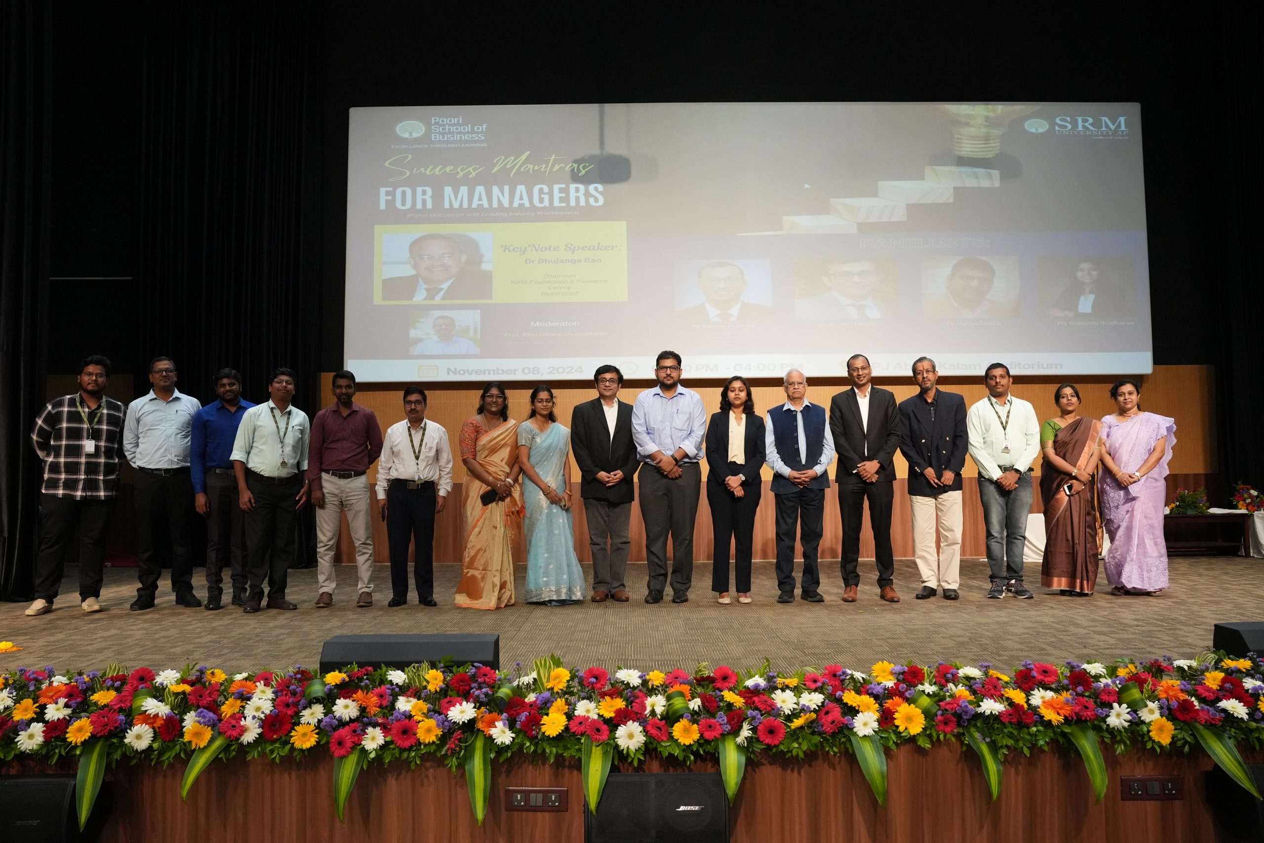 The event, moderated by Prof. Bharadwaj Sivakumar, Dean – Paari School of Business and Officiating Vice Chancellor, featured a distinguished panel that addressed the evolving landscape of management. Panellists shared their unique perspectives on effective leadership, motivation, and the importance of new-age skills in today’s corporate environment.