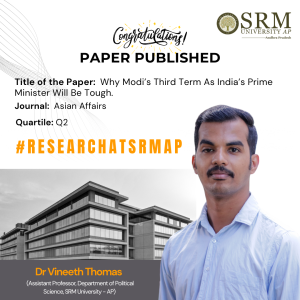 Dr Vineeth Thomas, an Assistant Professor in the Department of Political Science, has recently published a thought-provoking paper titled “Why Modi’s Third Term as India’s Prime Minister Will Be Tough” in the distinguished journal Asian Affairs. In his comprehensive analysis, Dr Vineeth delves into the political landscape of India and the various challenges Prime Minister Narendra Modi may face if he seeks re-election for a third consecutive term in 2024. Drawing on an array of political theories and current socio-economic indicators, the paper examines the underlying factors shaping Indian politics and public sentiment.