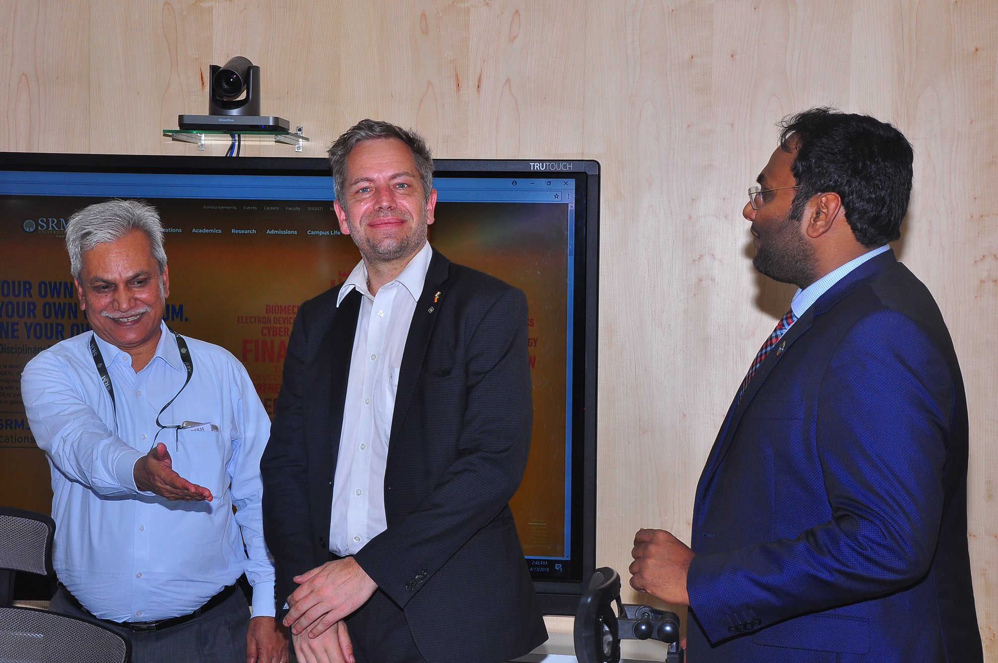He also said that they are very much impressed about the University Infrastructure and ready to establish jointly “Center of Excellence on Industrial Robotics” in SRM University, he added.