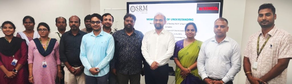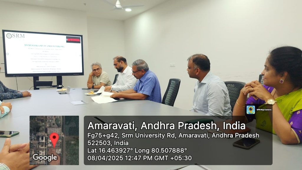 The MoU was officially signed on April 8, 2025, by Dr R Premkumar, Registrar – SRM University-AP, and Mr Ganta Srinath Reddy, Founder and CEO – The AI SCHOOL, at the varsity.