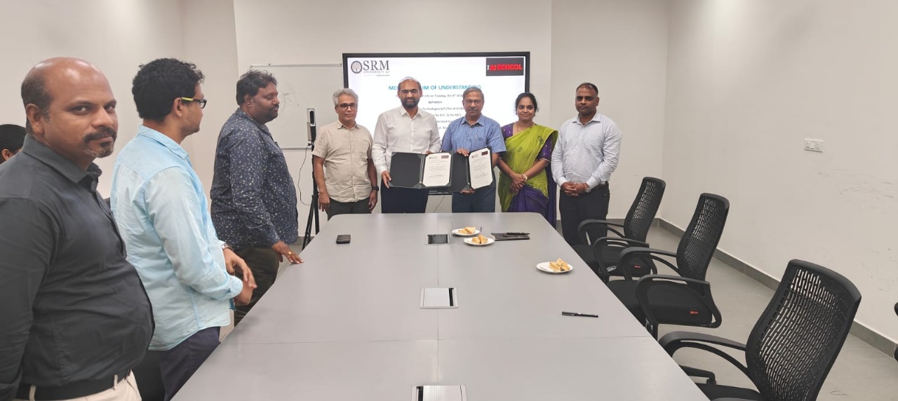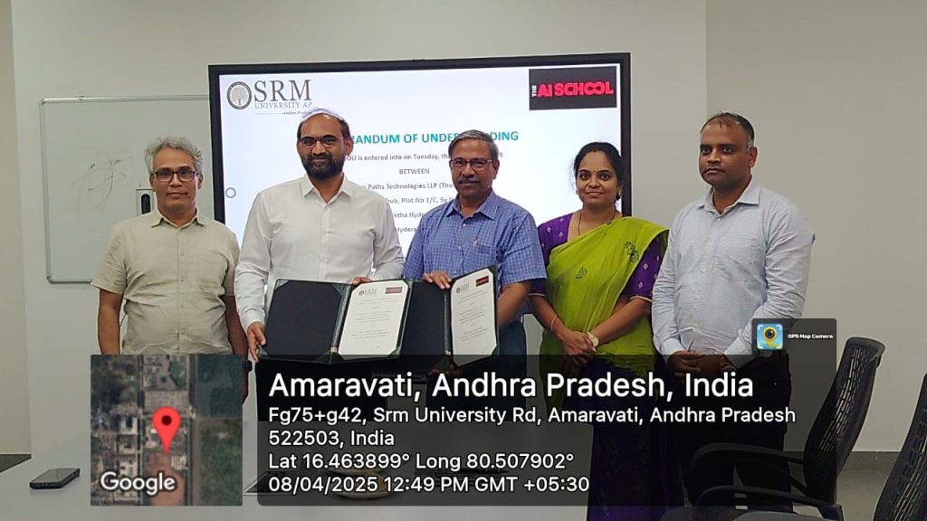 As part of its ongoing commitment to bridging academia and industry, SRM University-AP has signed a Memorandum of Understanding (MoU) with Learning Paths Technologies LLP (The AI SCHOOL) to collaborate on skill development, innovation, and research in AI, 5G, and 6G technologies.