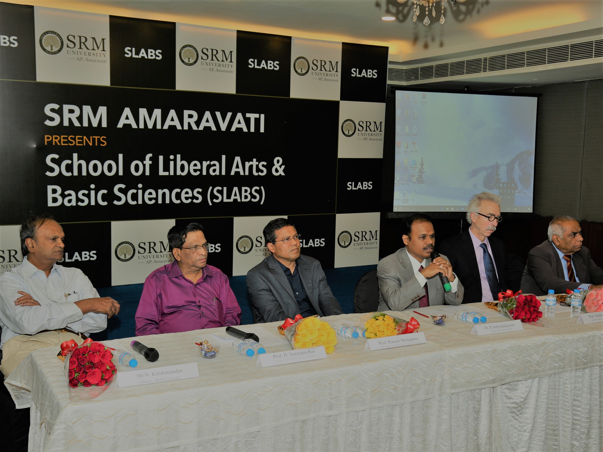 President of SRM University, Dr. P. Sathyanarayanan, announced the setting up of School of Liberal Arts and Basic Sciences (SLABS) at its University in Andhra Pradesh in the presence of the Honorary Pro Chancellor of SRM University, Andhra Pradesh, Prof. Nicholas Dirks (Chancellor Emeritus, University of California, Berkley), Dr. D Narayana Rao, Pro Vice Chancellor of SRM University, Andhra Pradesh and Members of the Board of Management Prof. Prasant Mohapatra (Vice Provost of Graduate Education at the University of California, Davis), Prof. Damodar Acharya (former Chairman, AICTE) and Mr. Kirubanandan, Advisor.