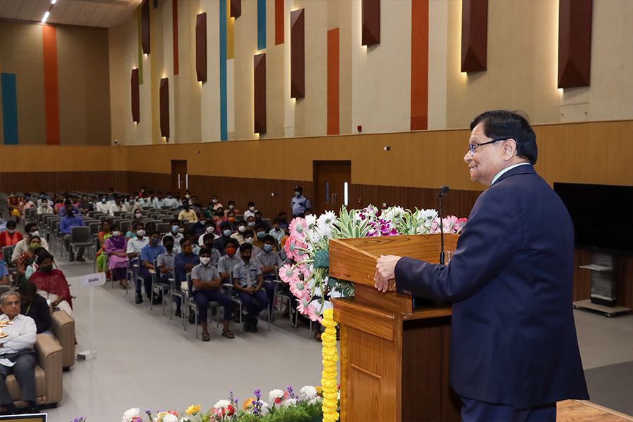 The inaugural address was delivered by Prof. V.S. Rao, Vice-Chancellor. He appreciated the students for their enormous participation in the activities organised as part of the celebration, and for rightly articulating the significance of the focal theme through their representations. “There cannot be a better example than the pandemic which demonstrated the integration of science and technology” he asserted. He also recollected the invaluable contributions of Indian scholars like Dr Jagadish Chandra Bose, Srinivasa Ramanujan, Homi J Bhabha and Vikram Sarabhai who transformed the scientific outlook of the country.