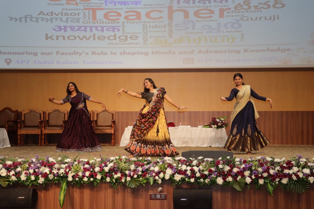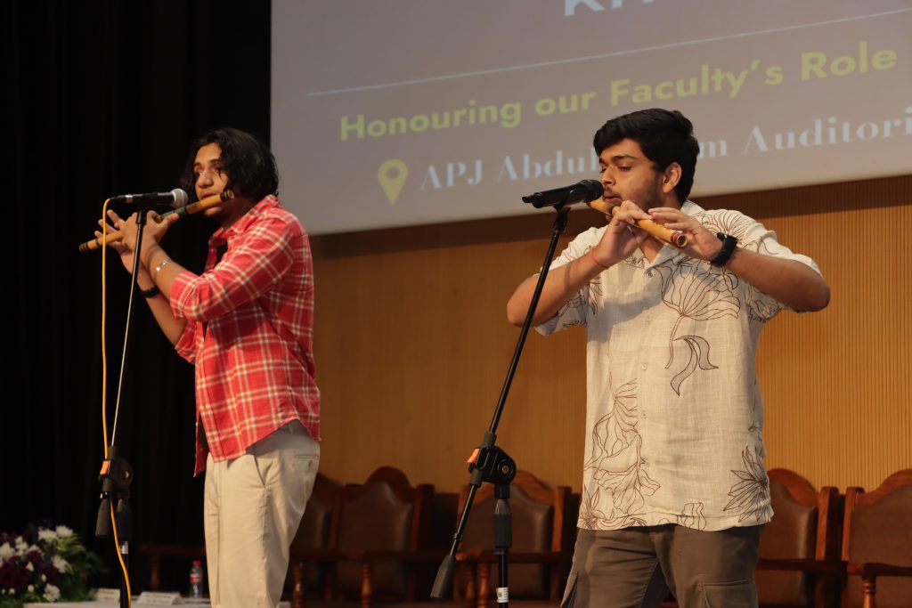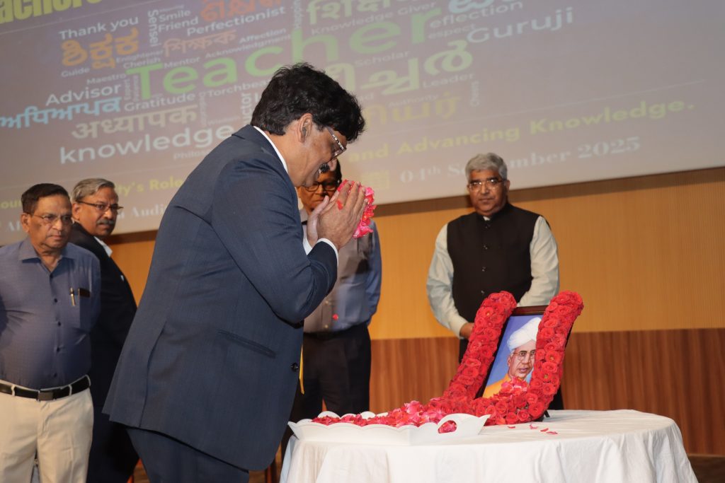 Pro Vice-Chancellor in his welcome address remarked on how teachers hold the ability to transform students. Addressing the popular misconception of how AI can replace teachers, Prof. Satish remarked, “AI may advance to great extent, but it can never replace the profound impact of teachers. Just as a restaurant meal can never match a mother’s cooking, so too can AI never replicate the love and transformation that educators bring to their students’ lives.” He also added that, in his opinion, the most respected strata of teachers are the primary and secondary school teachers, as they lay the foundation of knowledge and discipline in students. He mentioned that the university teachers fine-tune the students’ future.