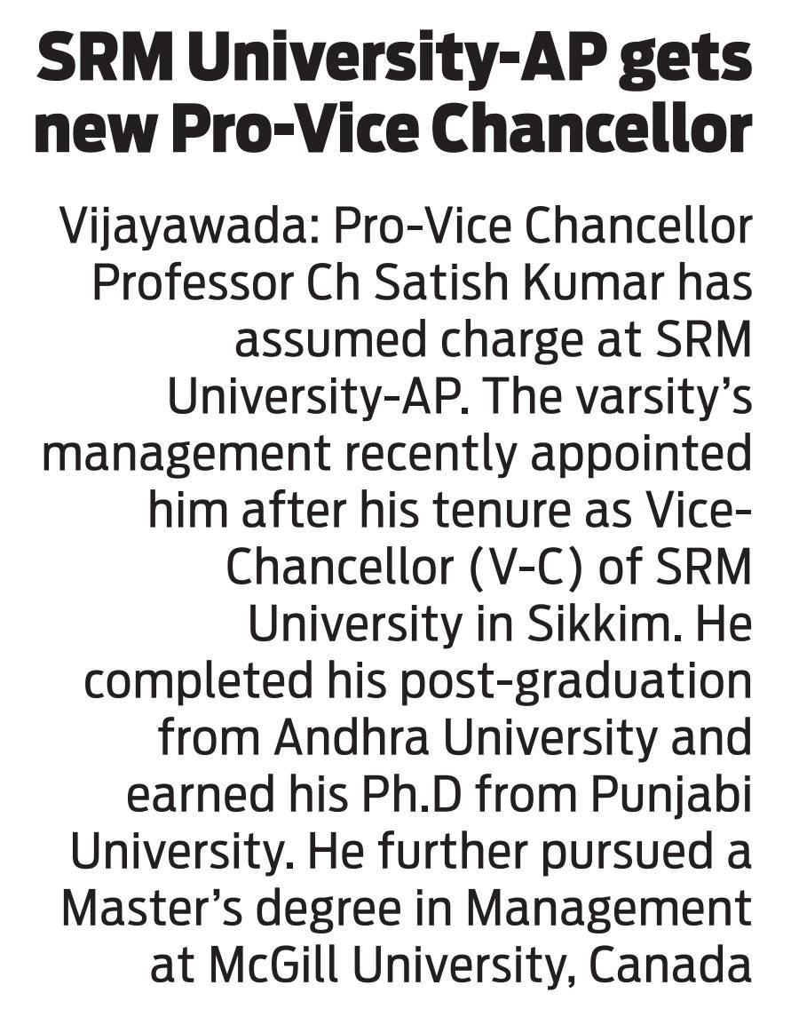 Email: admissions@srmap.edu.in