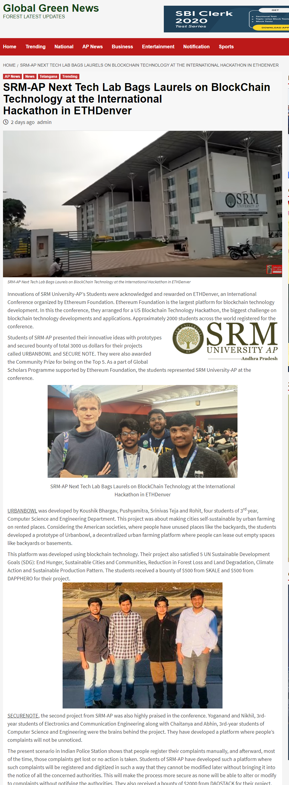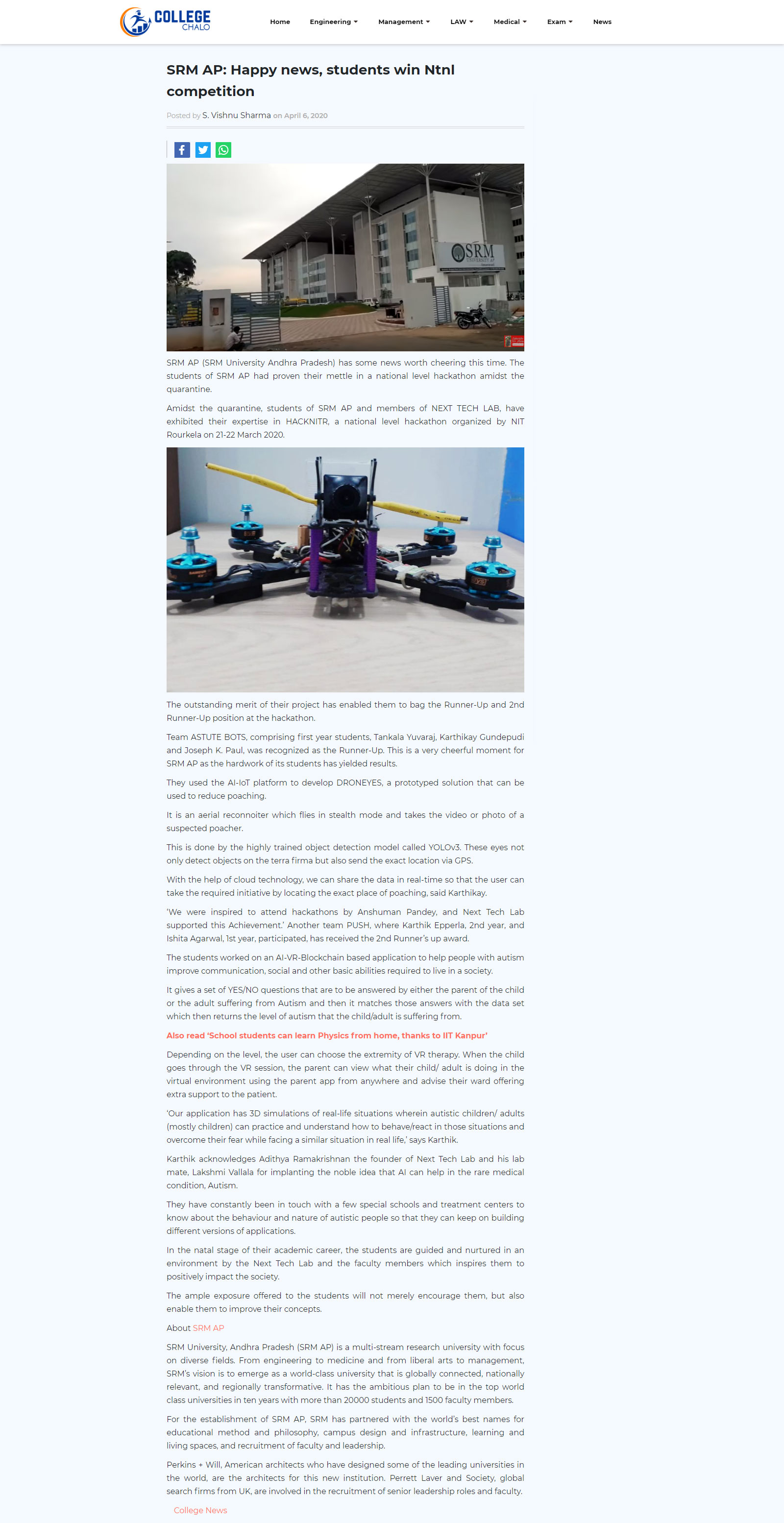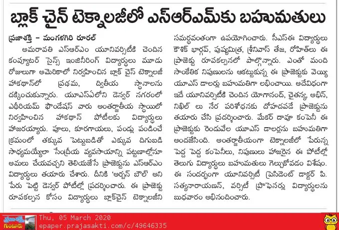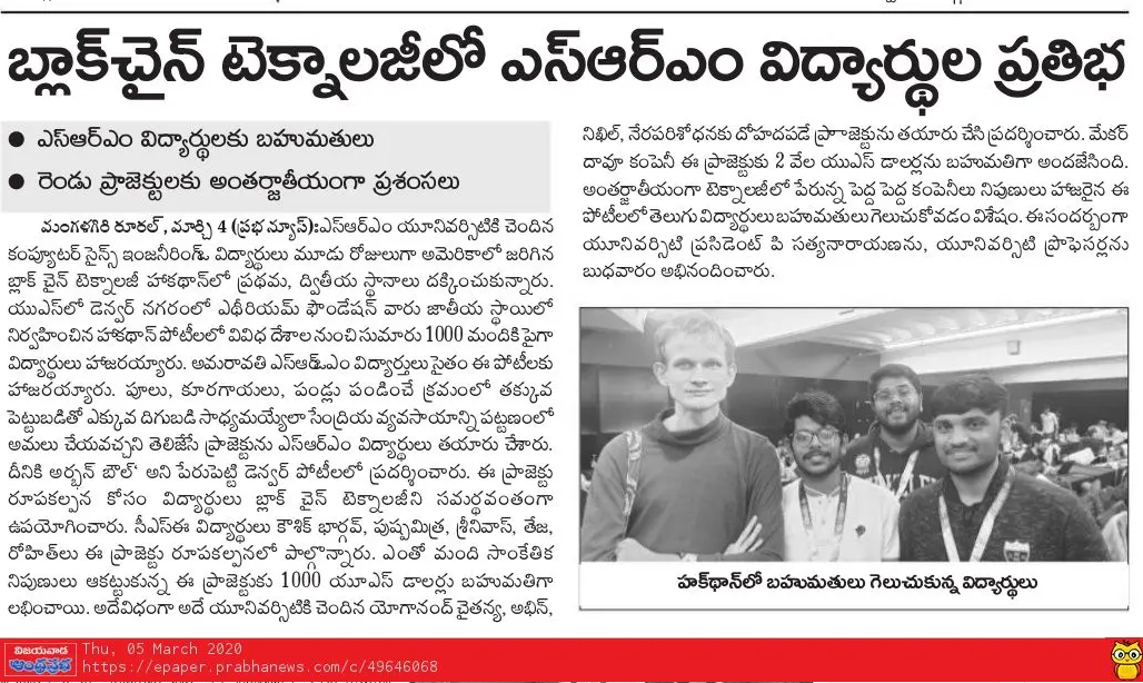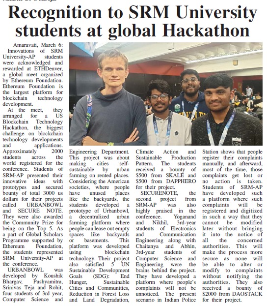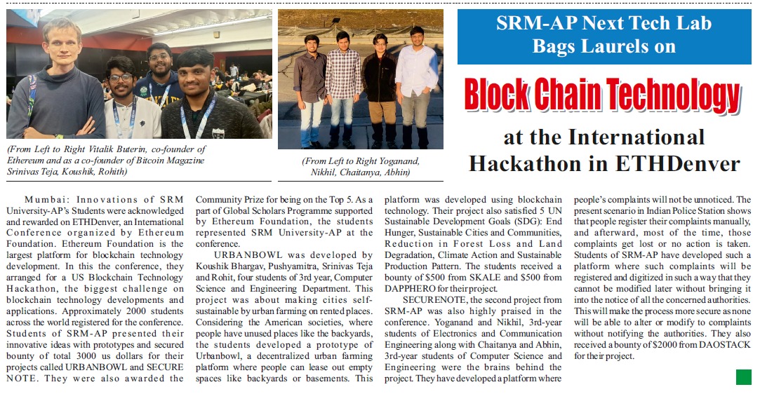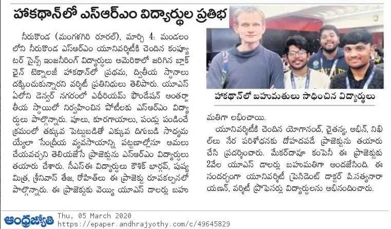 SRM AP students excel at nationa level online hackathon
