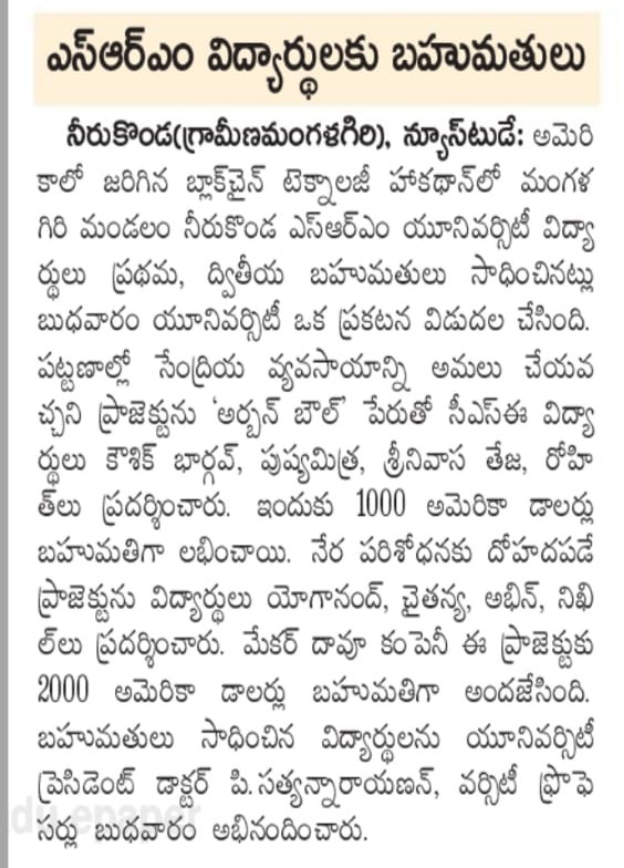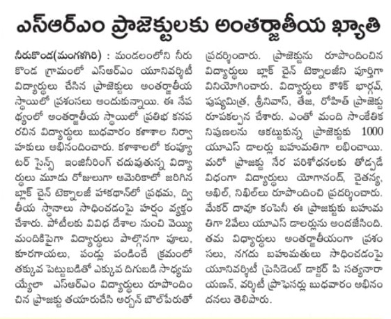 SRM AP: Happy news, students win Ntnl competition