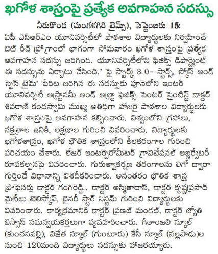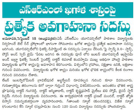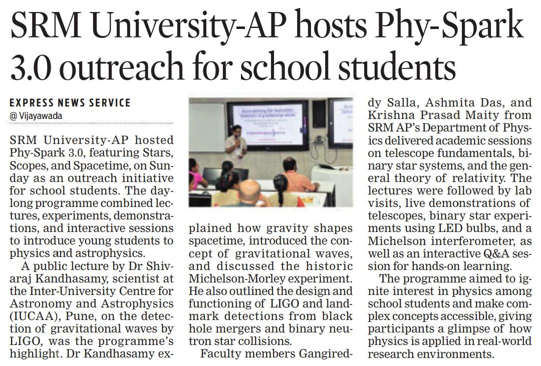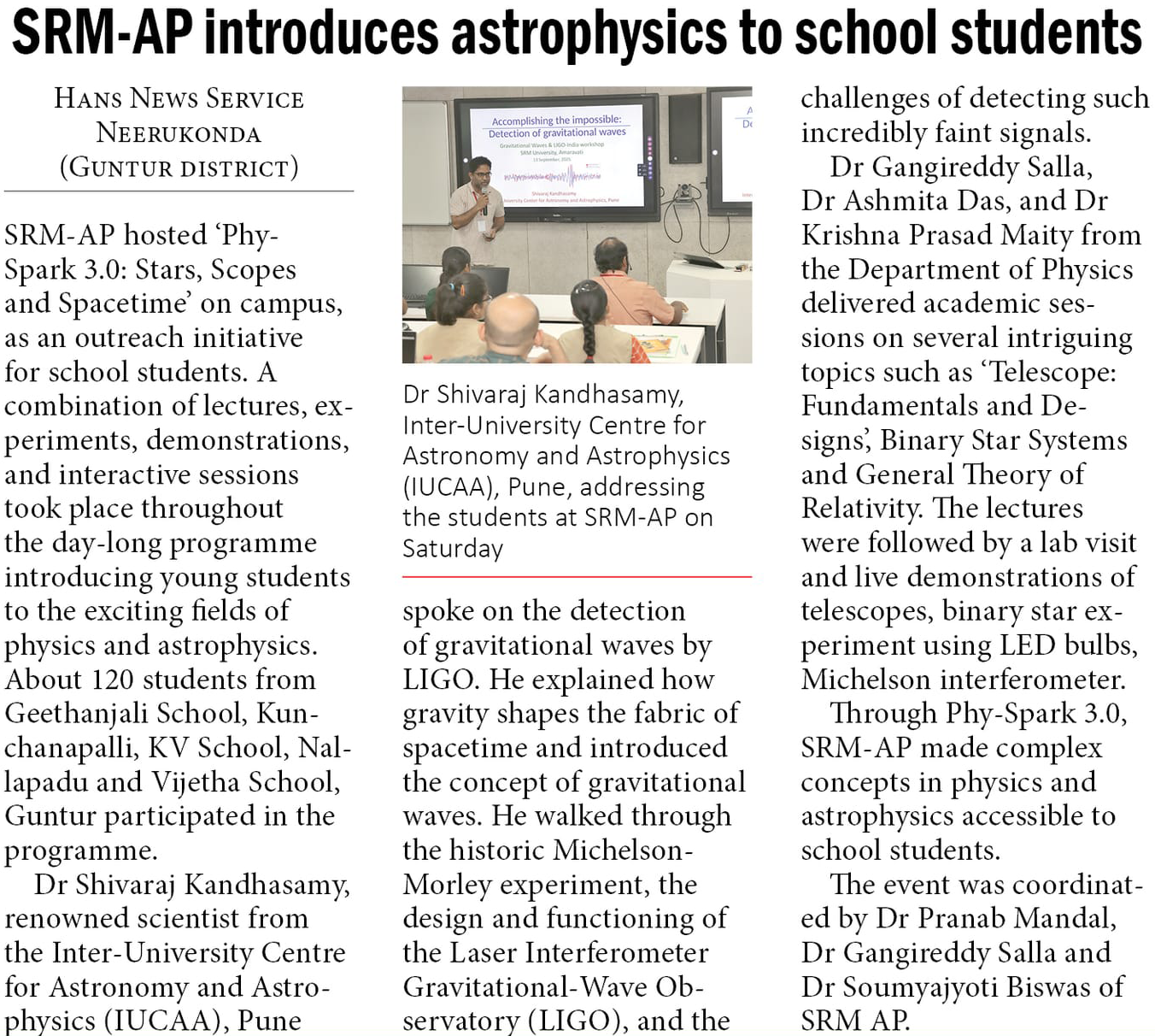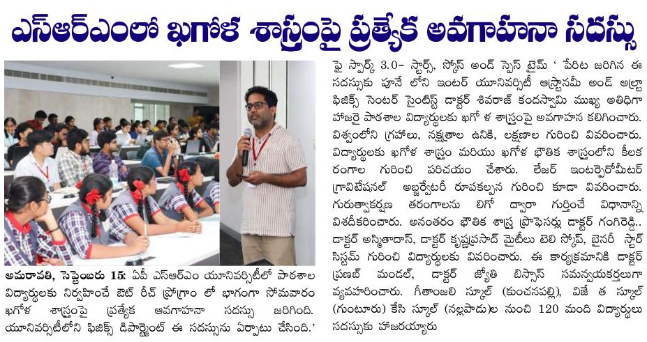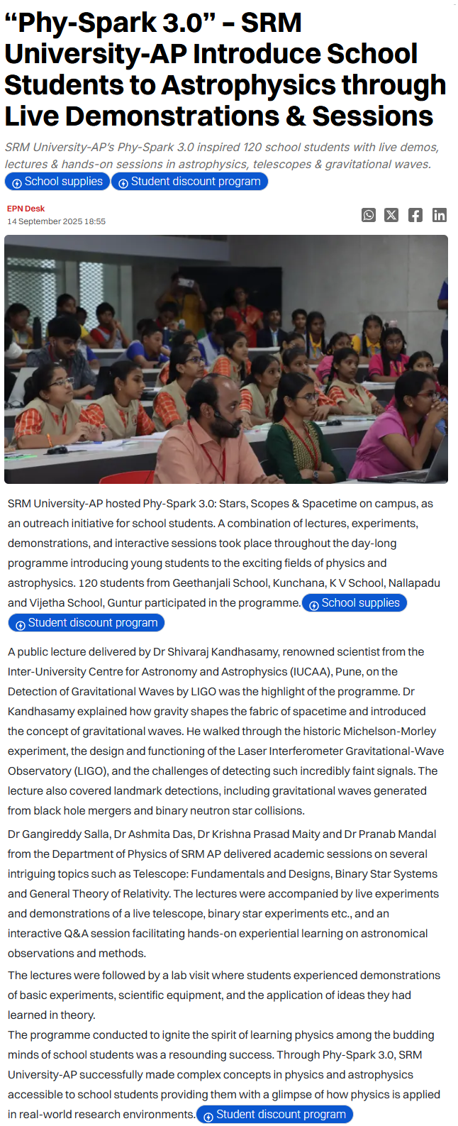 “Phy-Spark 3.0” – SRM University-AP Introduce School Students to Astrophysics through Live Demonstrations & Sessions