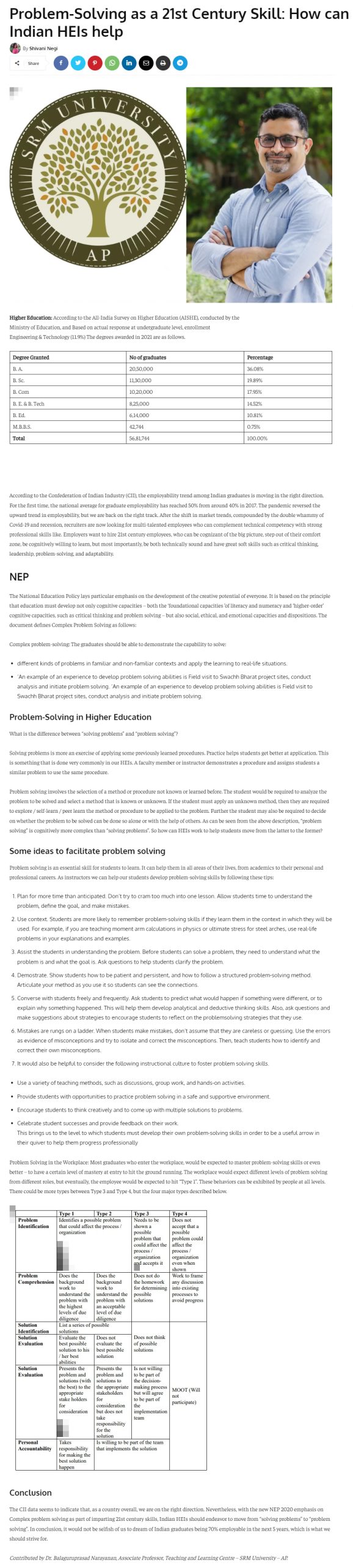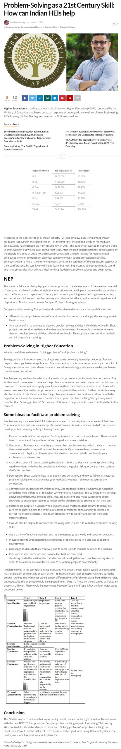 Problem-Solving as a 21st Century Skill: How can Indian HEIs help