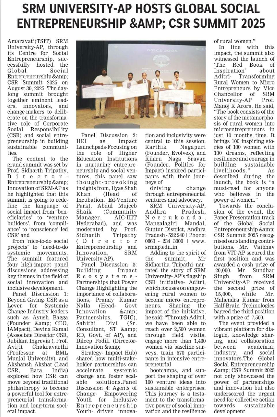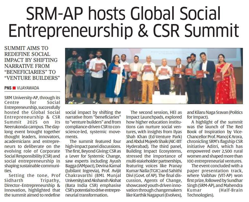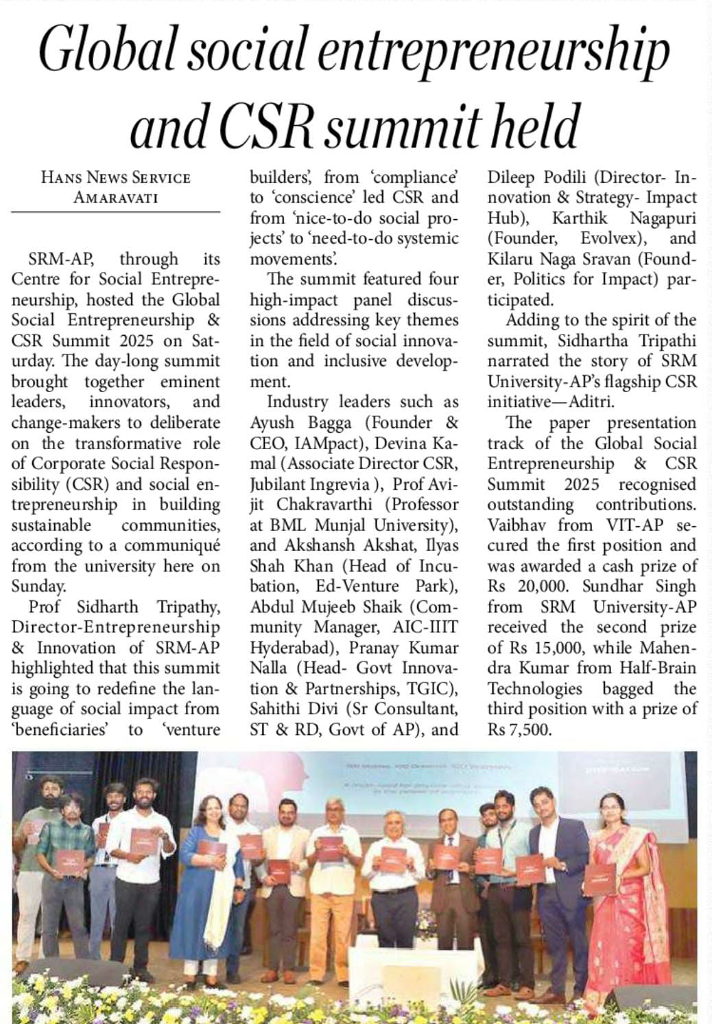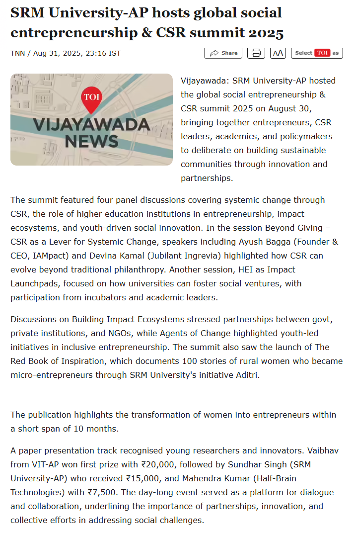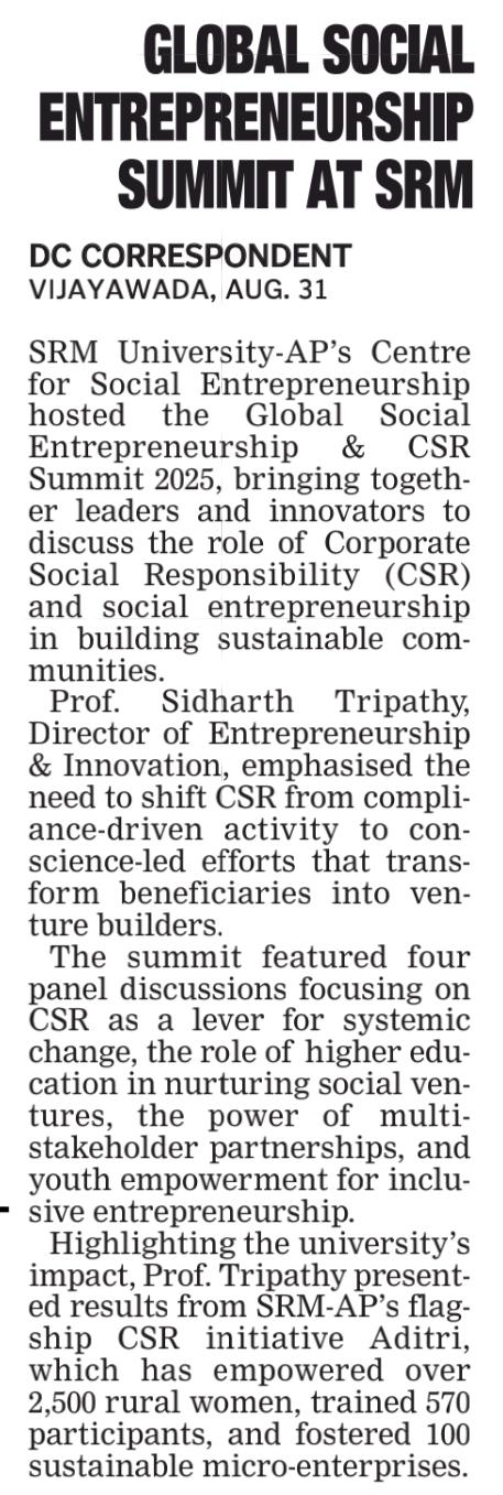 SRM AP hosts Global Social Entrepreneurship and CSR Summit